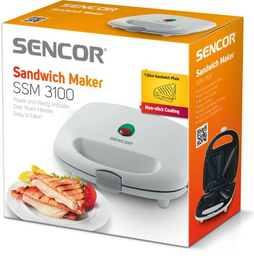 Sencor SSM 3100  - это удобная в использовании бутербродница для приготовления 4 треугольных сэндвичей. Горячие бутерброды станут лучшим дополнением к завтраку, обеду или ужину. Автоматическая регулировка температуры обеспечивает оптимальный температурный режим для приготовления. А цветной индикатор всегда подскажет когда прибор включен в сеть и готов приступить к работе. Благодаря мощности 700 Вт бутербродница очень быстро нагревается.