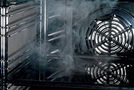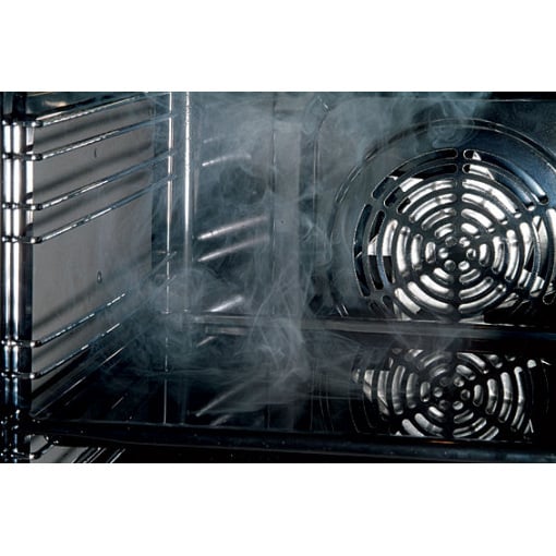Благодаря сверхгладкой структуре эмалированного покрытия уход осуществляется быстро, просто и эффективно. Достаточно налить 0,5 воды на противень, поставить его в духовой шкаф, установить температуру на 50°C, обычный режим, и время на 30 минут, или налить воды и активировать на дисплее функцию «Clean» (Очистка). После того, как пар пропитает и размягчит загрязненные места на стенках духового шкафа, их можно вытереть влажной тряпкой или губкой, и поверхность станет блестящей и чистой.