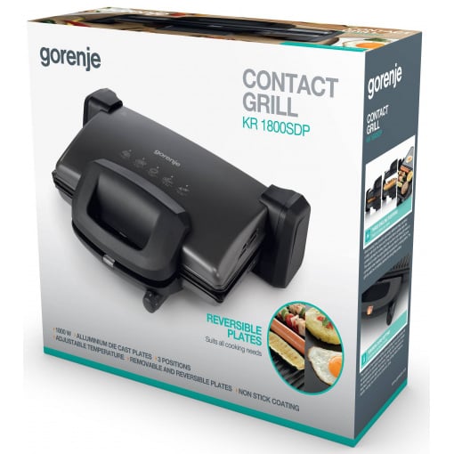 Гриль KR 1800 SDP от компании GORENJE мощностью 1800 Вт не занимает много места на кухне и подходит для приготовления самых разных блюд. Прибор оснащен антипригарными пластинами, благодаря чему блюда не пригорят.