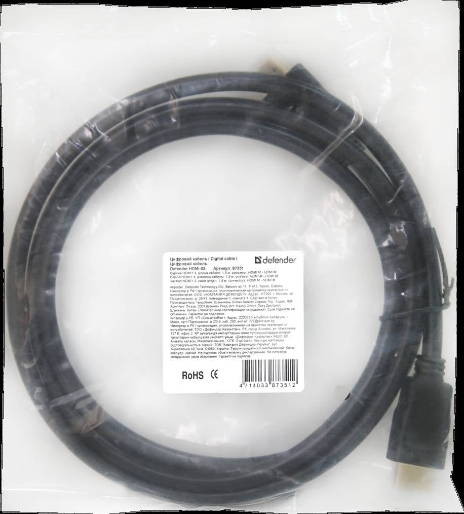 Подробные характеристики Кабель цифровой видео Defender HDMI-05 HDMI M-M (87351) (6337024).