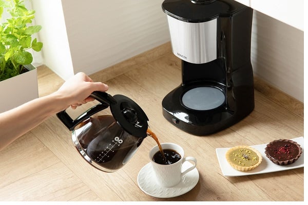 Кофеварка Sencor идеально подходит для приготовления 12 чашек кофе одновременно. Кофеварка имеет стеклянный кувшин с закрытой крышкой и теплоизолированной ручкой. Кофемашина также оснащена нагревательной пластиной с антипригарной поверхностью для поддержания оптимальной температуры. Имеет компактные размеры и впишется в любой интерьер кухни.