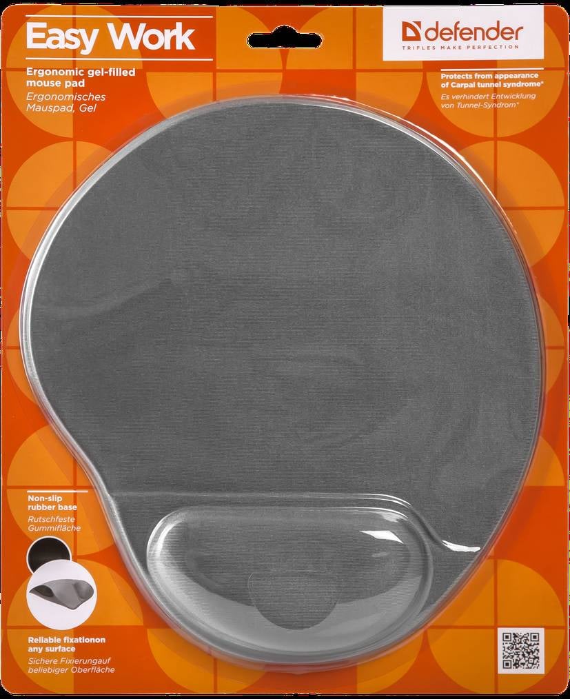 Коврик Defender Easy Work (50915) имеет специальную подушечку под запястье, наполненную гелем, благодаря которой рука меньше устает при работе. Этот коврик совместим с лазерными и оптическими мышками, а также имеет тонкую, но прочную конструкцию.
