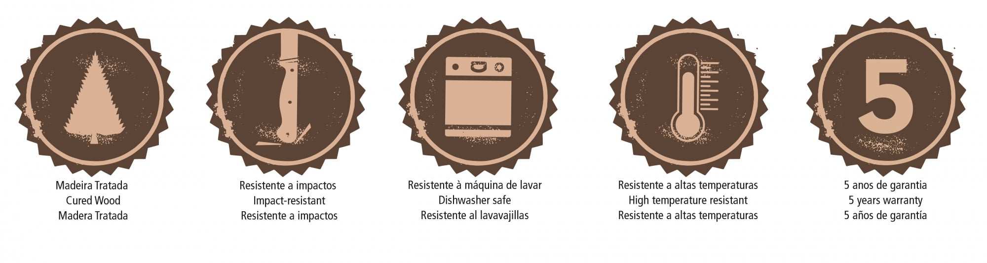 Серия POLYWOOD - доступная в двух цветах: коричневый и красный. Все ручки столовых приборов изготовлены из специально обработанного, ударостойкого, жаропрочного дерева Polywood. Изготовлены из нержавеющей стали AISI 420, толщиной 1 – 2,5 мм.