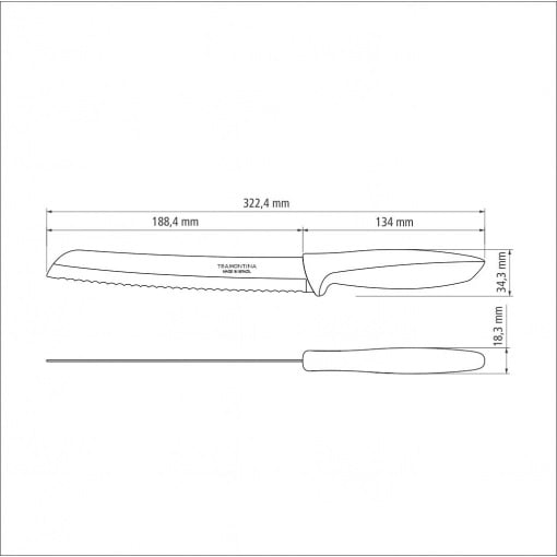 Подробные характеристики Нож для хлеба Tramontina Plenus 203 мм Black (6366799).