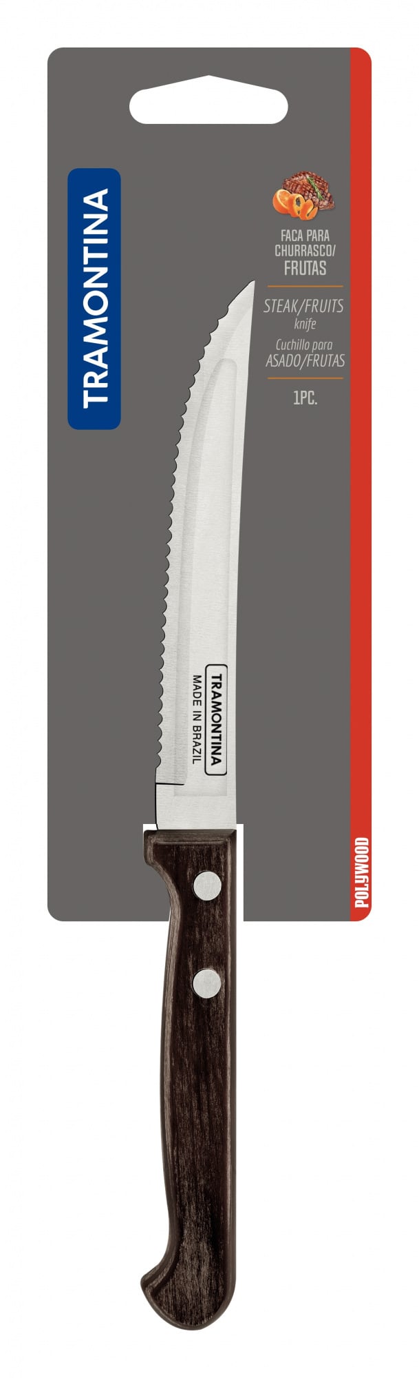 Подробные характеристики Нож для стейка Tramontina Polywood 127 мм Темное дерево (6188754).