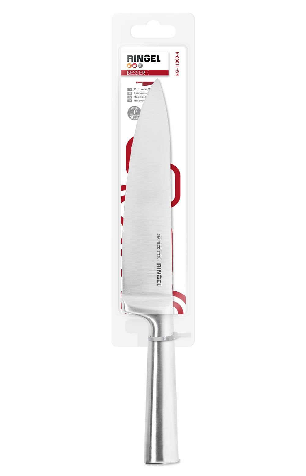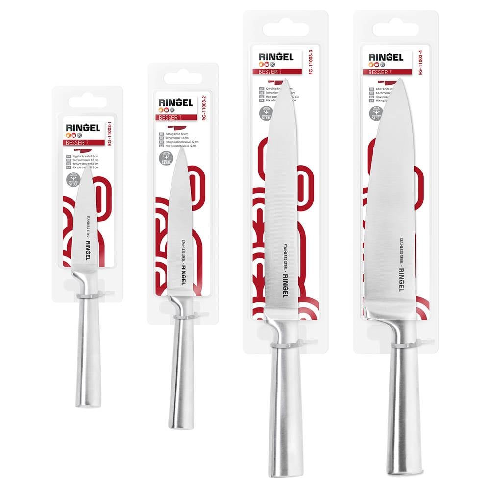 Корпус серии ножей BESSER изготовлен методом цельного литья из нержавеющей стали. Ножи имеют правильную геометрическую форму и хорошо сбалансированы. Ручка дополнительно имеет сатиновую полировку.