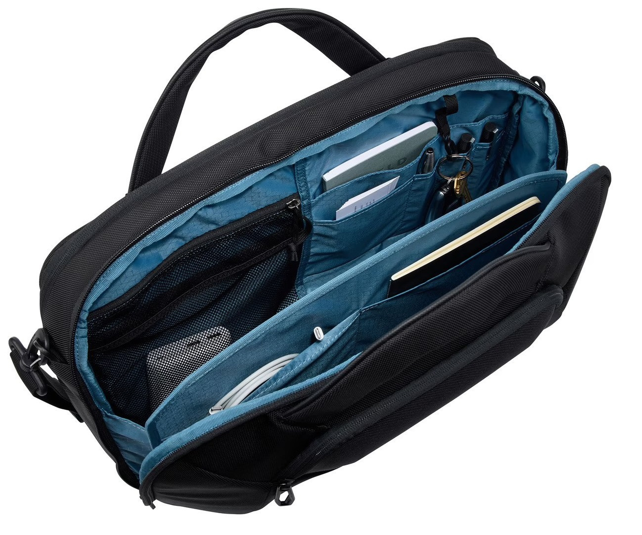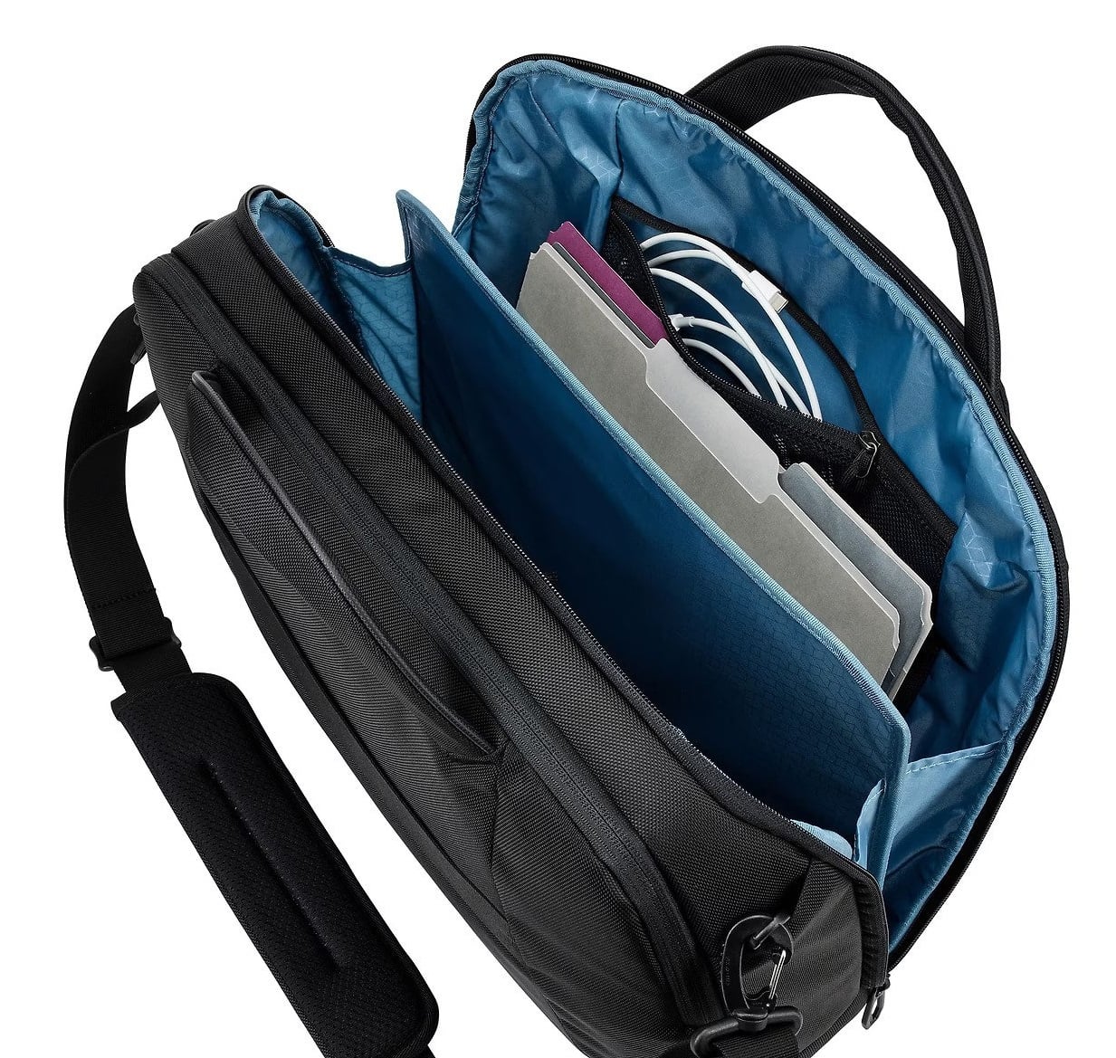• Встроенный разделитель в главном отделении поможет вам отделить документы и другие бумаги от тяжелых/крупных предметов