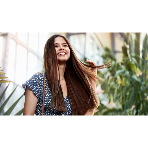 Отрицательно заряженные ионы позволяют снять статическое электричество и улучшить общее состояние волос, а также способствуют закрытию волосяных чешуек, что придает волосам дополнительный блеск. В результате ваши волосы гладкие, сияющие и шелковистые.