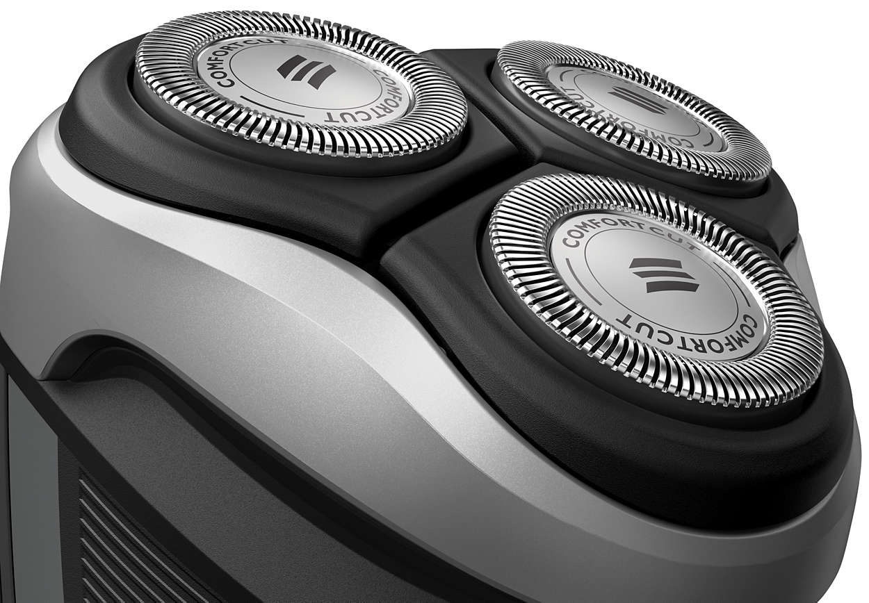 Комфортне сухе гоління завдяки системі лез ComfortCut із закругленими краями голів гоління. Леза легко ковзають по шкірі та захищають її від порізів та роздратування.