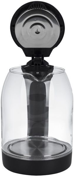 DK 2650 Xелектричний скляний чайник об'ємом 1.8 л. Для вашого комфорту та безпеки передбачені такі функції: обертання бази на 360 градусів, автоматичне відключення під час закипання. Крізь прозорі стіни можна спостерігати, як вода закипає.