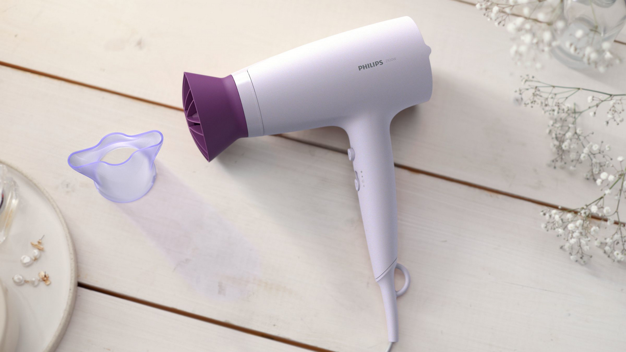 Этот фен мощностью 2100 Вт создает мощный воздушный поток для достижения великолепных результатов день за днем.