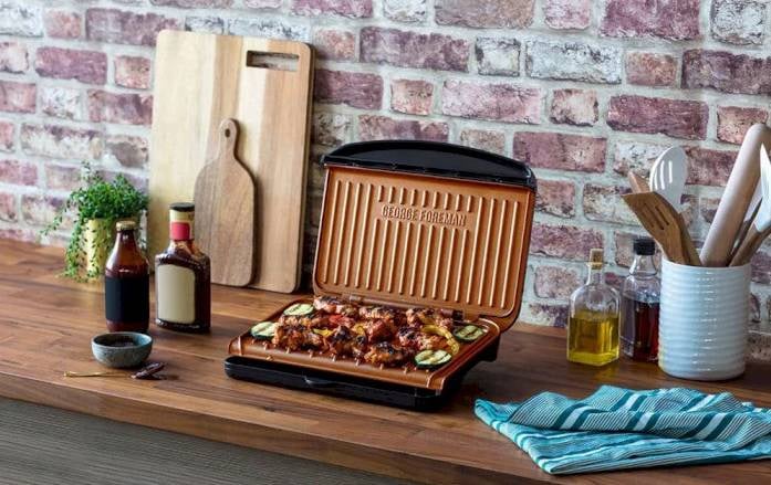 Детальні характеристики Гриль Russell Hobbs George Foreman 25811-56 Fit Grill Copper Medium 27.5х33.6х7.8 см черный (6651556).