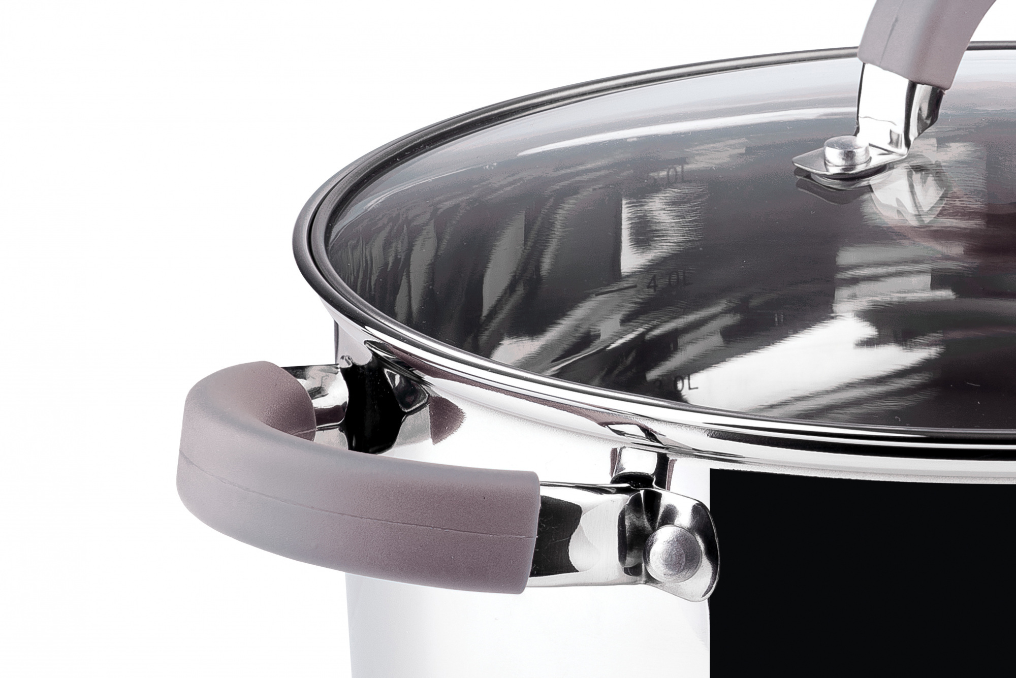 Потрійне капсульне дно забезпечує рівномірний розподіл тепла по дну та стінкам каструлі. Ергономічні ручки виконані з нержавіючої сталі із силіконовими накладками сірого кольору, що перешкоджають нагріванню. Мають надійне кріплення, яке забезпечить комфорт і безпеку під час приготування.