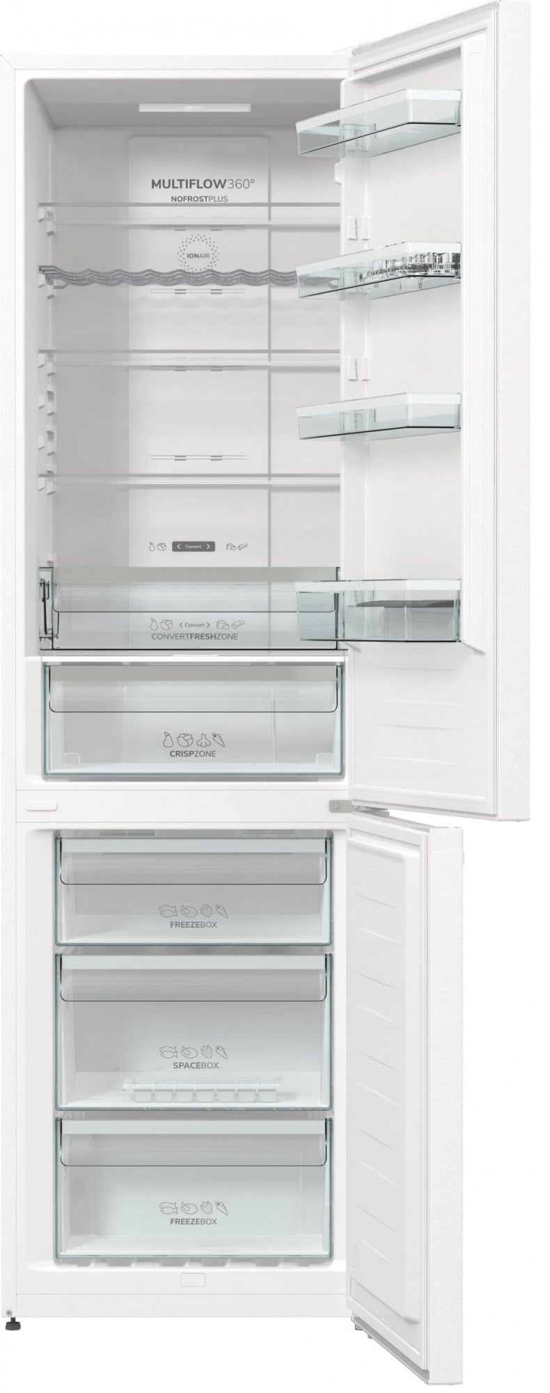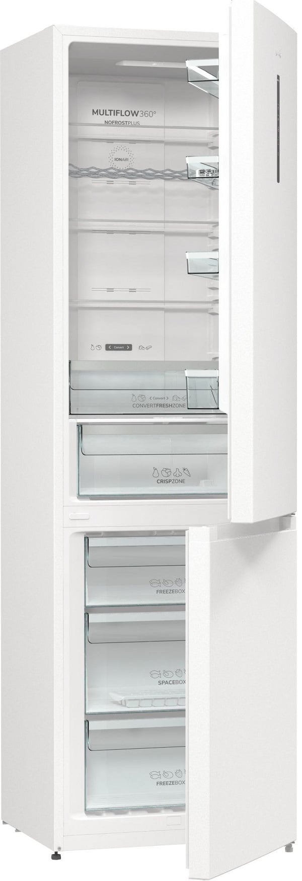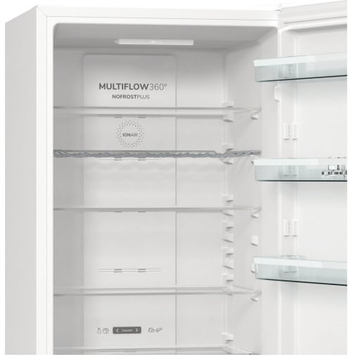 Ионизатор IonAir создает внутри прибора отрицательно заряженные ионы, которые равномерно распределяются по всему холодильному отделению с помощью новой системы вентиляции MultiFlow 360°. Воздух, обогащенный анионами, сохраняет вкус продуктов и удаляет неприятные запахи.