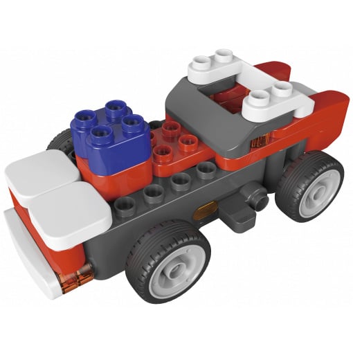 Дитячий конструктор Paiblocks Racecar є набір різнокольорових деталей у кількості 65 штук, з якого можна зібрати п'ять різних моделей автомобільної техніки. Завдяки наявності колісної платформи з електродвигуном, а також пульта дистанційного керування, готовими машинками можна керувати по радіосигналу, що дуже урізноманітнить застосування іграшки. Для роботи електромоторчика знадобиться 4 батареї типу АА (батарейки не входять до комплекту), а для пульта – ; 3 елементи живлення LR44, причому останні йдуть у комплекті.