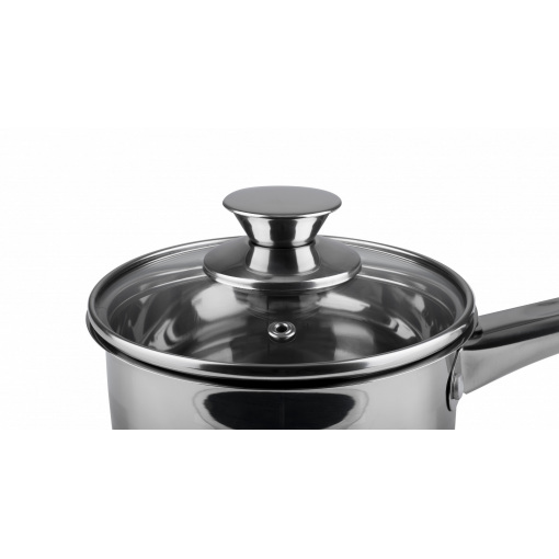 Кожен виріб лінійки Kinder має зручну кришку з термостійкого скла і має отвори для випуску зайвої пари. Завдяки міцній скляній кришці легко спостерігати за приготуванням їжі, не знімаючи її з каструлі або ковша. Ручки каструль виготовлені з нержавіючої сталі і закріплені заклепками, тому вони надійно тримаються і не нагріваються.