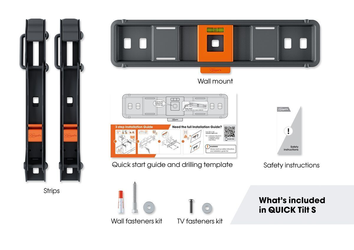 Выбирая настенное крепление QUICK Tilt для телевизора, вы выбираете не только простоту установки, но и безопасность. Система SoftLock™ гарантирует надежную фиксацию телевизора, а система TiltGrip™ обеспечивает надежное крепление в любом положении. Кроме того, каждое настенное крепление QUICK для телевизора сертифицировано TÜV и испытано на нагрузку, в три раза превышающую максимально заявленную. Поэтому настенные крепления QUICK Tilt для телевизоров отвечают самым строгим требованиям безопасности. Вы получаете 5-летнюю гарантию на свою покупку.
