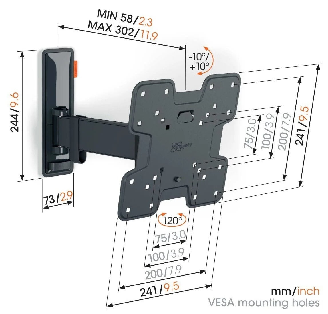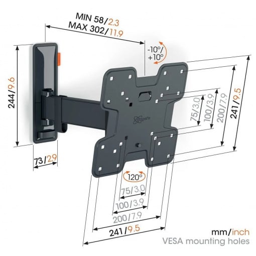 Безопасность, дизайн и комфорт просмотра - непременные спутники этого стильного поворотного настенного крепления для телевизора COMFORT Full-Motion. Настенное крепление специально разработано для интенсивного использования. Оно очень прочное и гарантирует наилучшие условия для просмотра. Настенное крепление можно повернуть на угол до 120° и наклонить на 20° (по 10° вперед и назад). Настенное крепление подходит для телевизоров с диагональю от 19 до 43 дюймов и весом до 15 кг.
