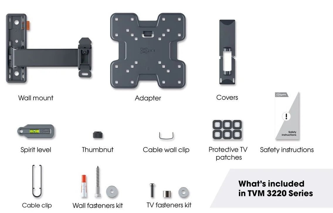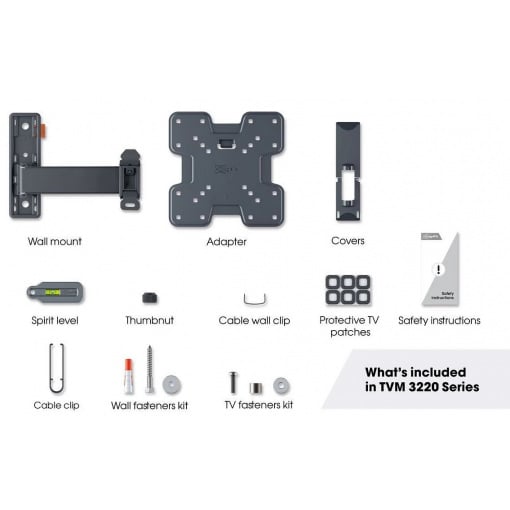 Поворотное настенное крепление для телевизора COMFORT Full-Motion монтируется очень легко. Vogel's облегчает вам работу во всех отношениях. Шаблон для сверления отверстий, шурупы, дюбели Fischer® DuoPower, кабельная стяжка и уровень включены в комплект. Чтобы отметить место для первого отверстия, используйте наше бесплатное приложение DrillRight™ AR. Инструкции по быстрому монтажу можно найти в кратком руководстве по монтажу.