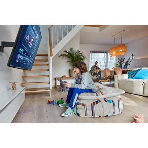 Вам хочется наслаждаться просмотром телевизора по максимуму. Это возможно с настенным креплением для телевизора COMFORT Full-Motion. Вы можете добиться идеального угла обзора всего одним пальцем, поскольку настенное крепление оснащено функцией One-Finger™ Movement. Секрет в специальных подшипниках. Поэтому поворот телевизора получается очень плавным и легким.