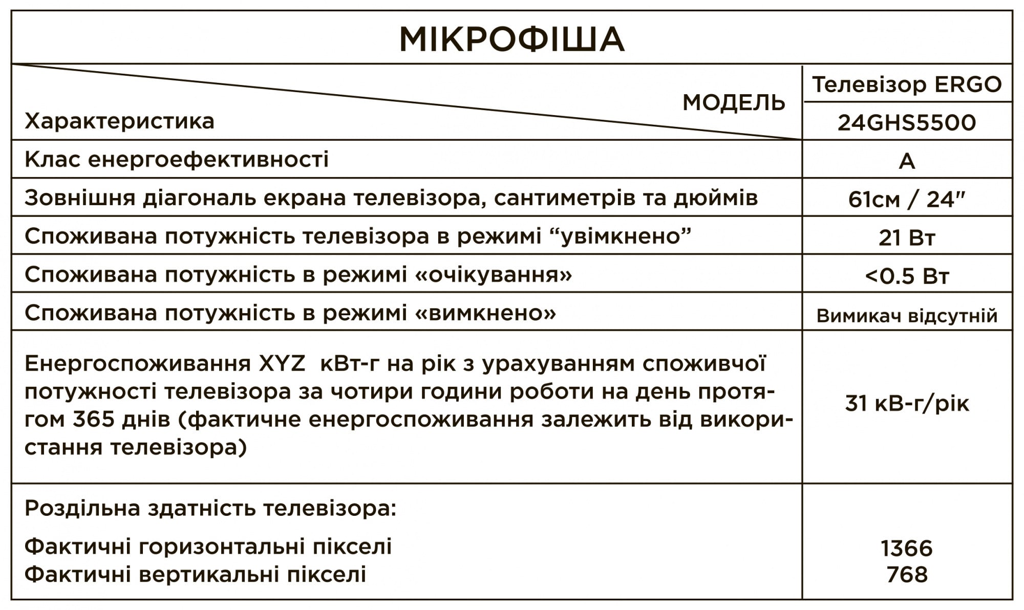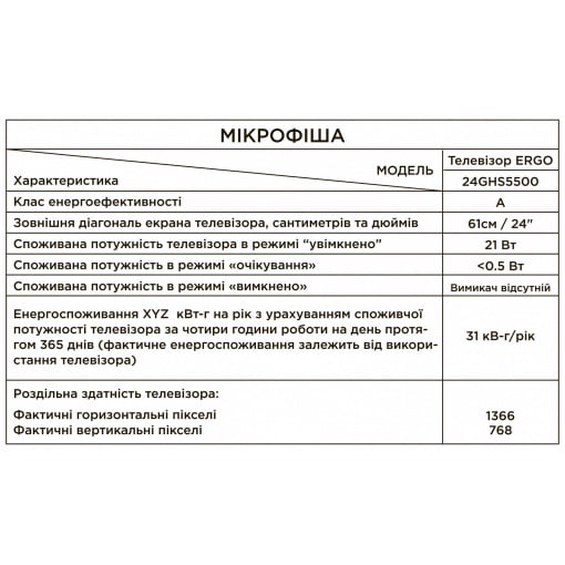 Детальні характеристики LED-телевизор ERGO 24GHS5500 (6815371).