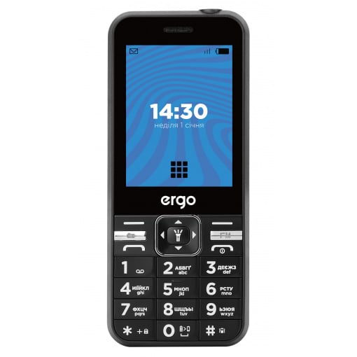 ERGO Е281 оснащений зрозумілим меню, яскравим TFT-дисплеєм діагоналлю 2,8", з якого зручно переглядати зображення, а також акумулятором ємністю 3000 мА, завдяки якому телефон довго тримає заряд.