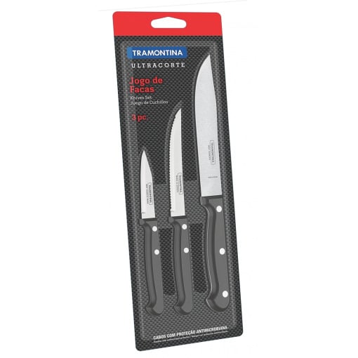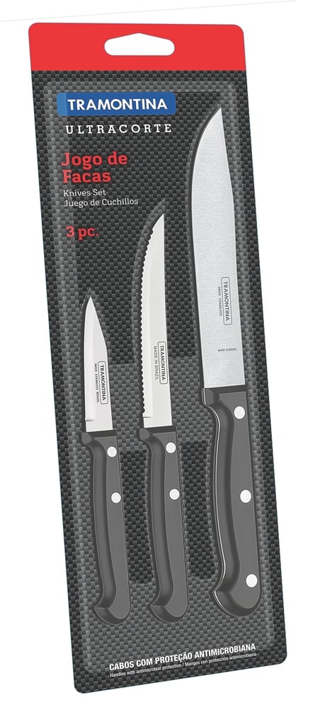 Ножі серії ULTRACORTE відносяться до професійних високоякісних ножів, завдяки особливому підбору матеріалів та технології виготовлення. Лезо виготовлене з високоякісної харчової нержавіючої сталі марки AISI 420, завтовшки ~1.2 мм, з товарним знаком Tramontina. Рукоятка зроблена з поліпропілену із захисним шаром проти розвитку мікробів – Мікробан. Можна мити у посудомийній машині.