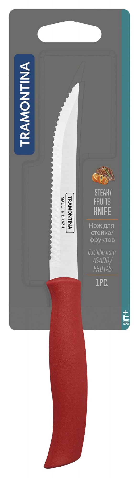 Детальні характеристики Нож для стейка Tramontina Soft Plus 127 мм Red (6861822).