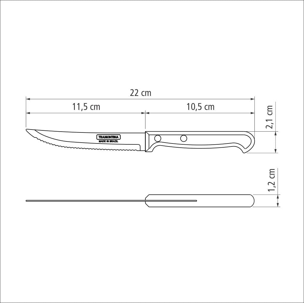 Ножі серії ULTRACORTE відносяться до професійних високоякісних ножів, завдяки особливому підбору матеріалів та технології виготовлення. Лезо виготовлене з високоякісної харчової нержавіючої сталі марки AISI 420, завтовшки ~1.2 мм, з товарним знаком Tramontina. Рукоятка зроблена з поліпропілену із захисним шаром проти розвитку мікробів – Мікробан. Можна мити у посудомийній машині.