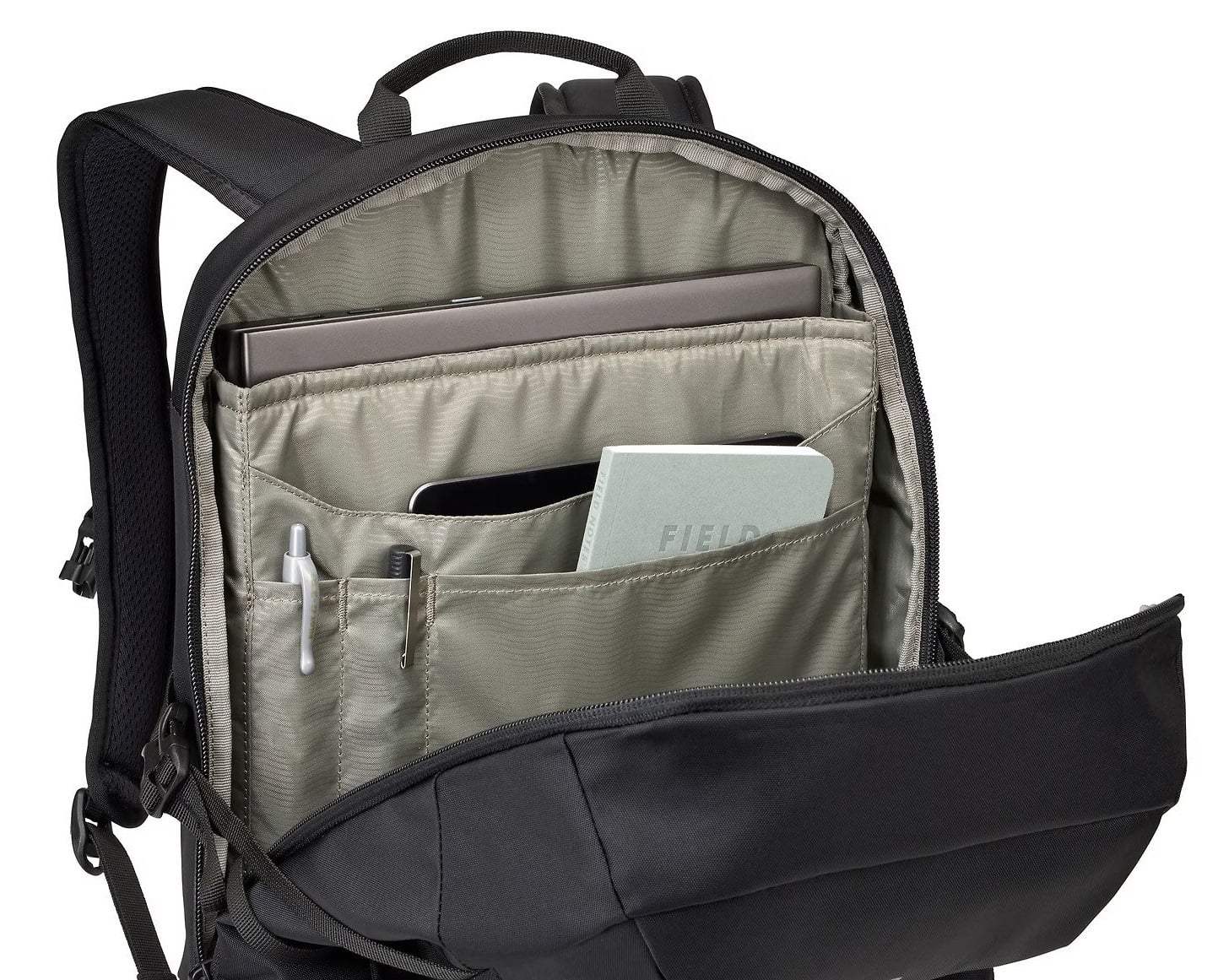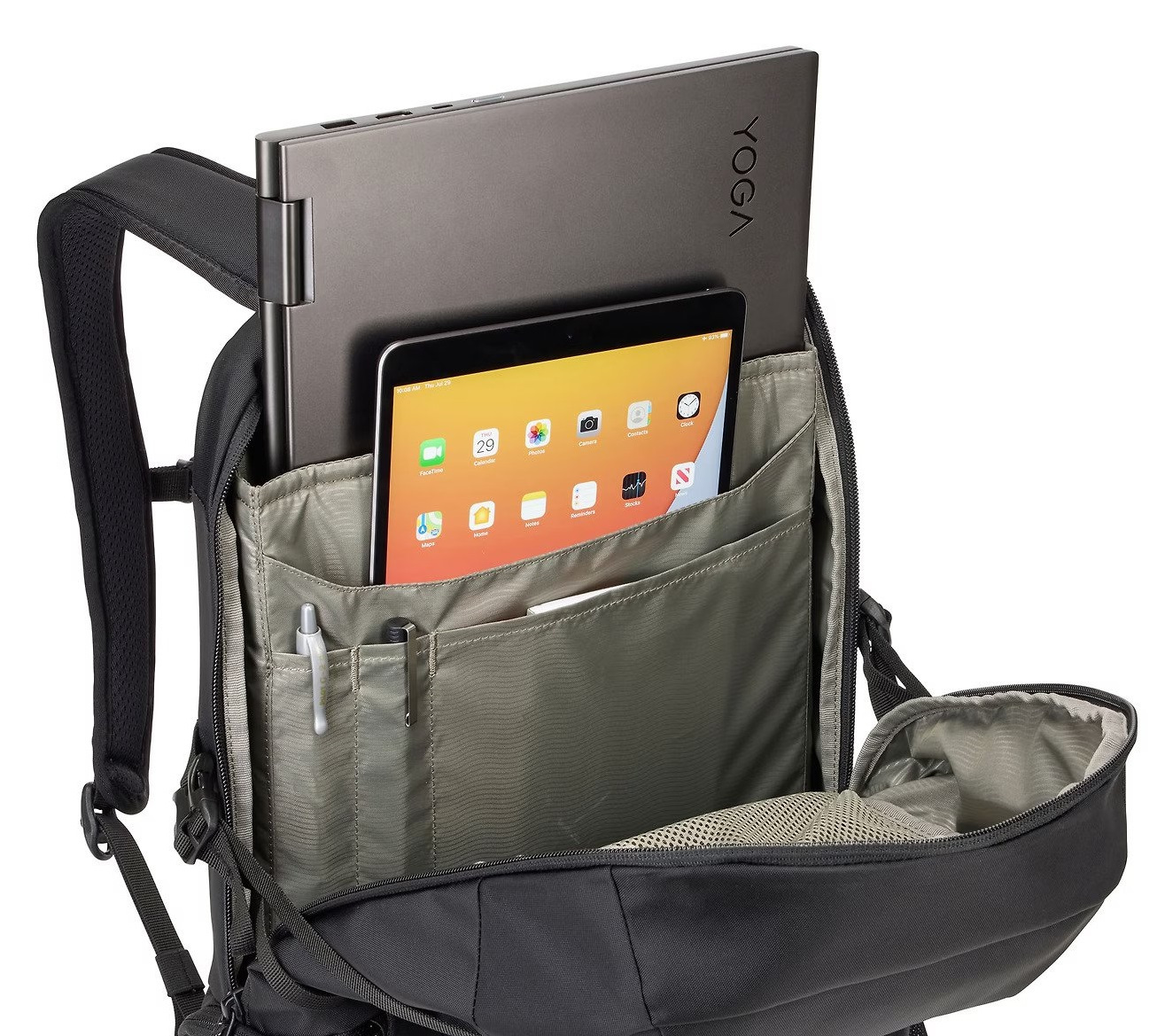 • Выступающие карманы для ноутбука с диагональю 15,6 дюйма и планшета с диагональю 10,5 дюйма