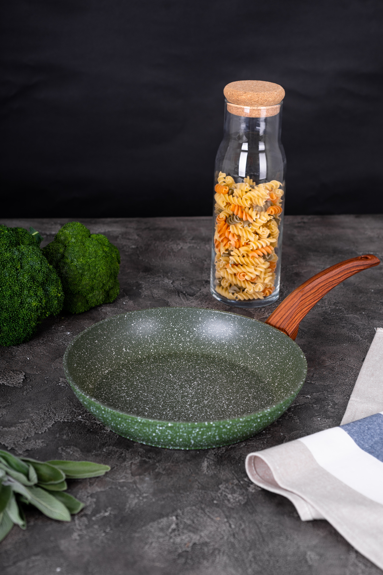 . Сковорода Pesto. Діаметр: 28 см. Висота стінки: 5.2 см. Матеріал: кований алюміній. Наявність кришки: немає