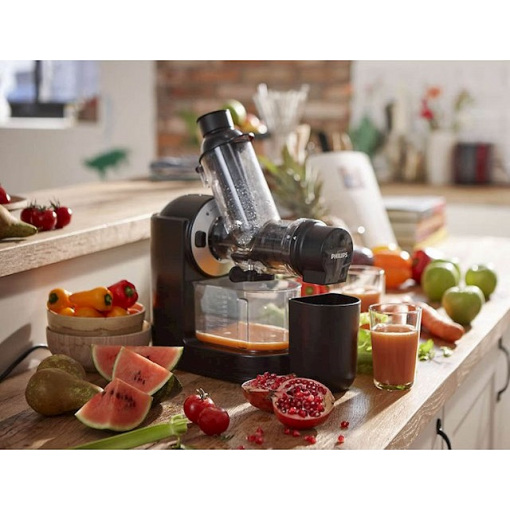 Фрукти та овочі складаються з багатьох клітин, які містять сік, вітаміни та інші життєво важливі поживні речовини. Інноваційна технологія Philips Masticating розкриває клітини, що забезпечує максимальну екстракцію соку (до 80%) з улюблених плодів і мінімум відходів. |