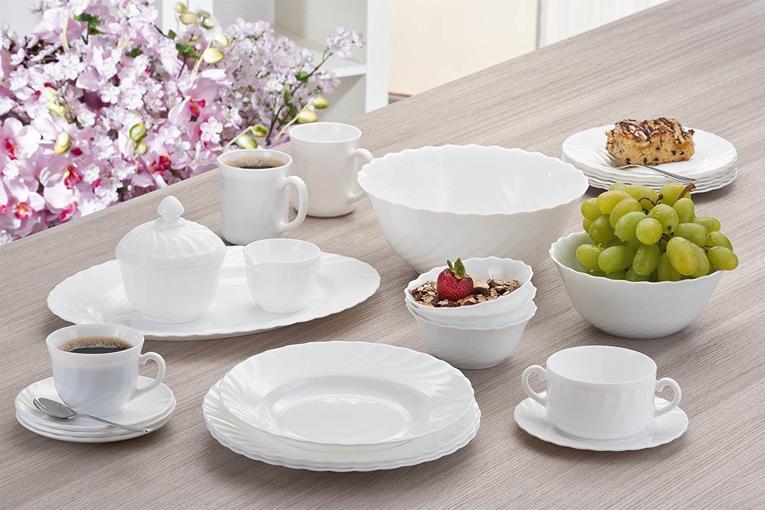 З кожним готом компанія вдосконалює технології та покращує якість свого скла. У них вдалося створити таке високоміцне скло, якому не страшні ні удари, ні перепади температур. Так само до плюсів даного матеріалу можна віднести абсолютно гладку поверхню, що перешкоджає проникненню бактерій і сторонніх запахів у посуд. Можна використовувати в мікрохвильовій печі, а також мити в посудомийній машині.