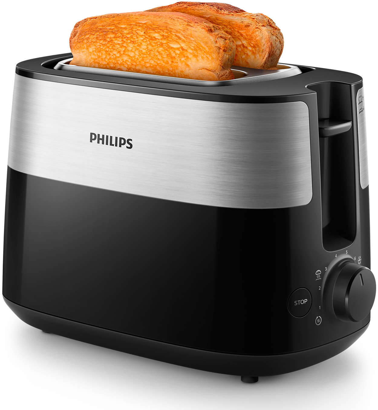 Два великі регульовані відділення підходять для тостів різного розміру. Завдяки функції автоматичного центрування тост розміщується по центру та рівномірно підрум'янюється з обох боків. |