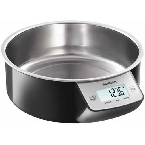 Кухонні ваги Sencor SKS 4030 BK зі знімною чашею. Поєднання стильного дизайну та функціональності. Чаша терезів знімна, виконана з нержавіючої сталі для легкого догляду. Крім стандартного зважування, на цих вагах можна автоматично відображати об'єм молока або води. При зважуванні Ви можете вибрати одиниці вимірювання (метричні або англійські) на нижній частині ваги за допомогою перемикача одиниць вимірювання. Великий РК-дисплей з підсвічуванням відображає не лише вагу продуктів, а також задані параметри для зважування.