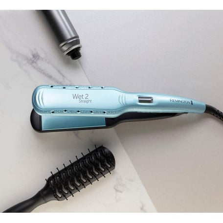 Щипці-випрямляч Remington S7350 Wet2Straight зарекомендували себе як універсальний пристрій, який не просто витягає волосся, але повністю замінює фен. Тепер достатньо промокнути волосся сухим рушником і скористатися стайлером для сушіння та укладання одночасно. Керамічні пластини дбайливо висушують волосся, роблячи його гладким і шовковистим, а спеціальні отвори відводять утворюється в результаті сушіння пар. Більше немає необхідності купувати кілька приладів одночасно або навантажувати повну валізу у відпустку, про все, що пов'язане з волоссям поклопочеться Remington S7350 Wet2Straight.